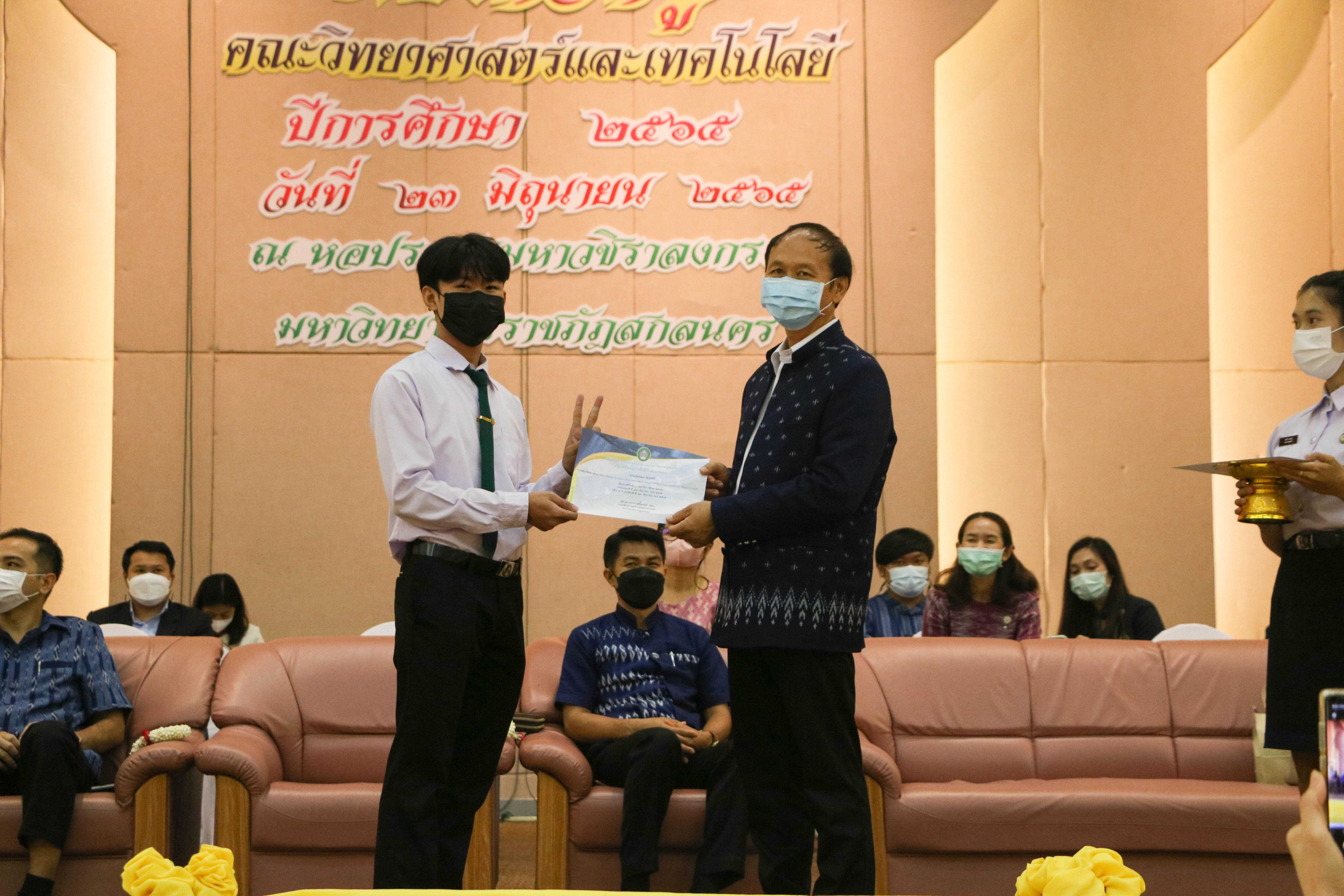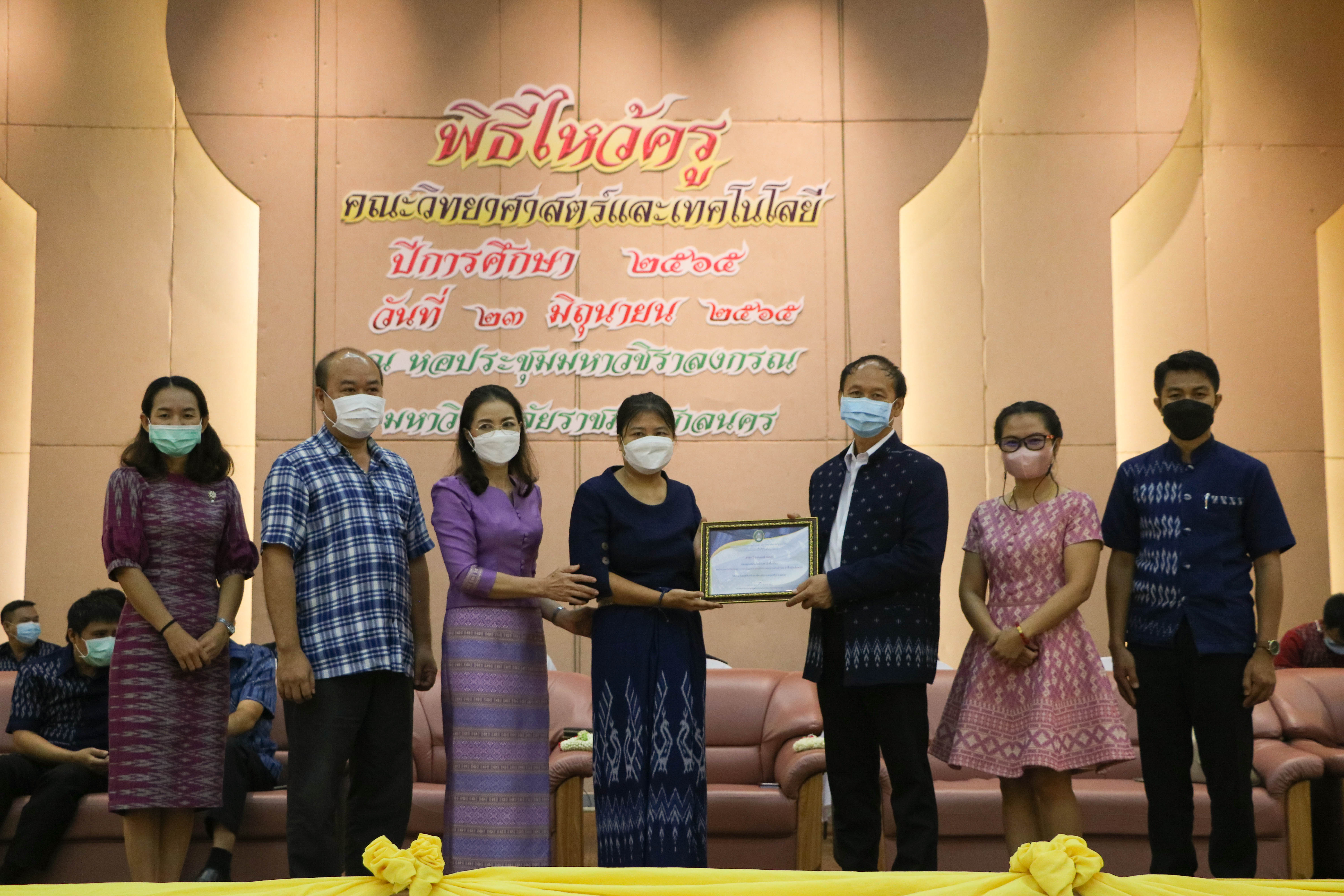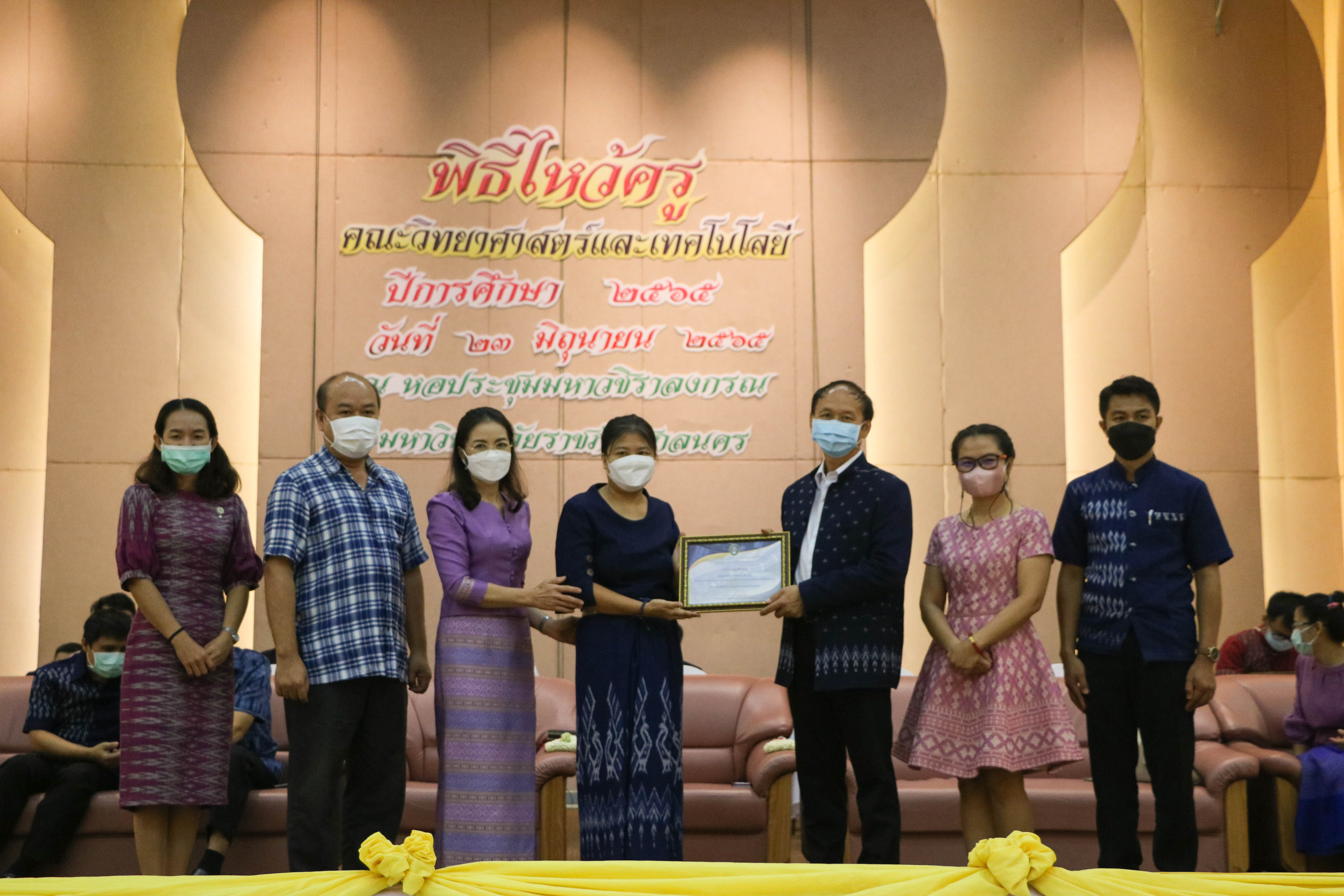 กิจกรรมไหว้ครู ประจำปีการศึกษา 2565 คณะวิทยาศาสตร์และเทคโนโลยี และพิธีรับมอบเกียรติบัตร “นักศึกษา เรียนดี กิจกรรมดี และแต่งกายดี” และ “นักศึกษาที่สร้างชื่อเสียงสู่คณะ”ณ หอประชุมมหาวชิราลงกรณ์