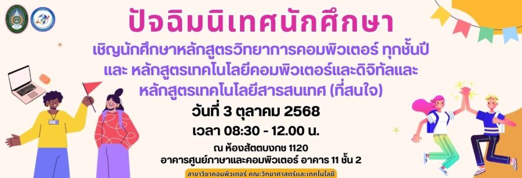 สาขาวิชาคอมพิวเตอร์ ขอเชิญเข้าร่วมกิจกรรมปัจฉิมนิเทศ พี่ปี 4 หลักสูตรวิทยาการคอมพิวเตอร์ เผยเเพร่เมื่อ กันยายน 23, 2568กันยายน 23, 2025 โดย AdamIT 52 เข้าชม ขอเชิญนักศึกษาหลักสูตรวิทยาการคอมพิวเตอร์ ทุกชั้นปี และ หลักสูตรเทคโนโลยีคอมพิวเตอร์และดิจิทัลและหลักสูตรเทคโนโลยีสารสนเทศ (ที่สนใจ) ในวันที่ 3 ตุลาคม 2568 เวลา 08.30 – 12.00 น. ณ อาคาร 11 ศูนย์คอมพิวเตอร์ ห้องสัตตบงกต ชั้น 2 กำหนดการปัจฉิมดาวน์โหลด FacebookFacebookXXLINELine